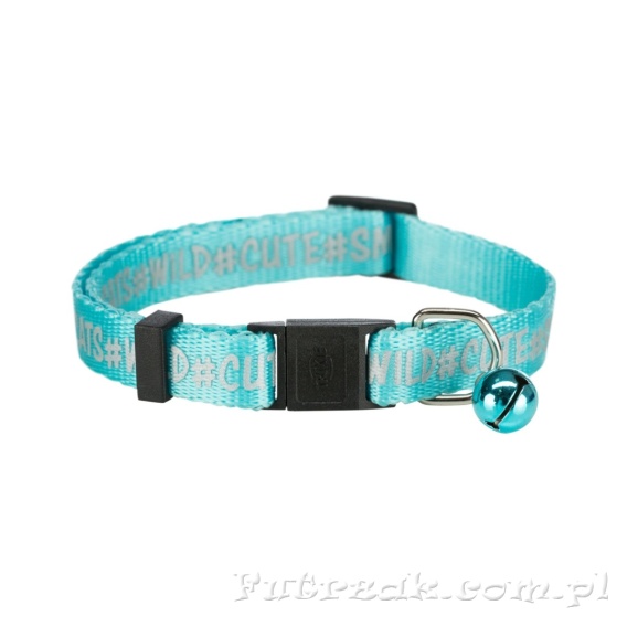 Odblaskowa obroża dla kota z motywem i dzwoneczkiem.
